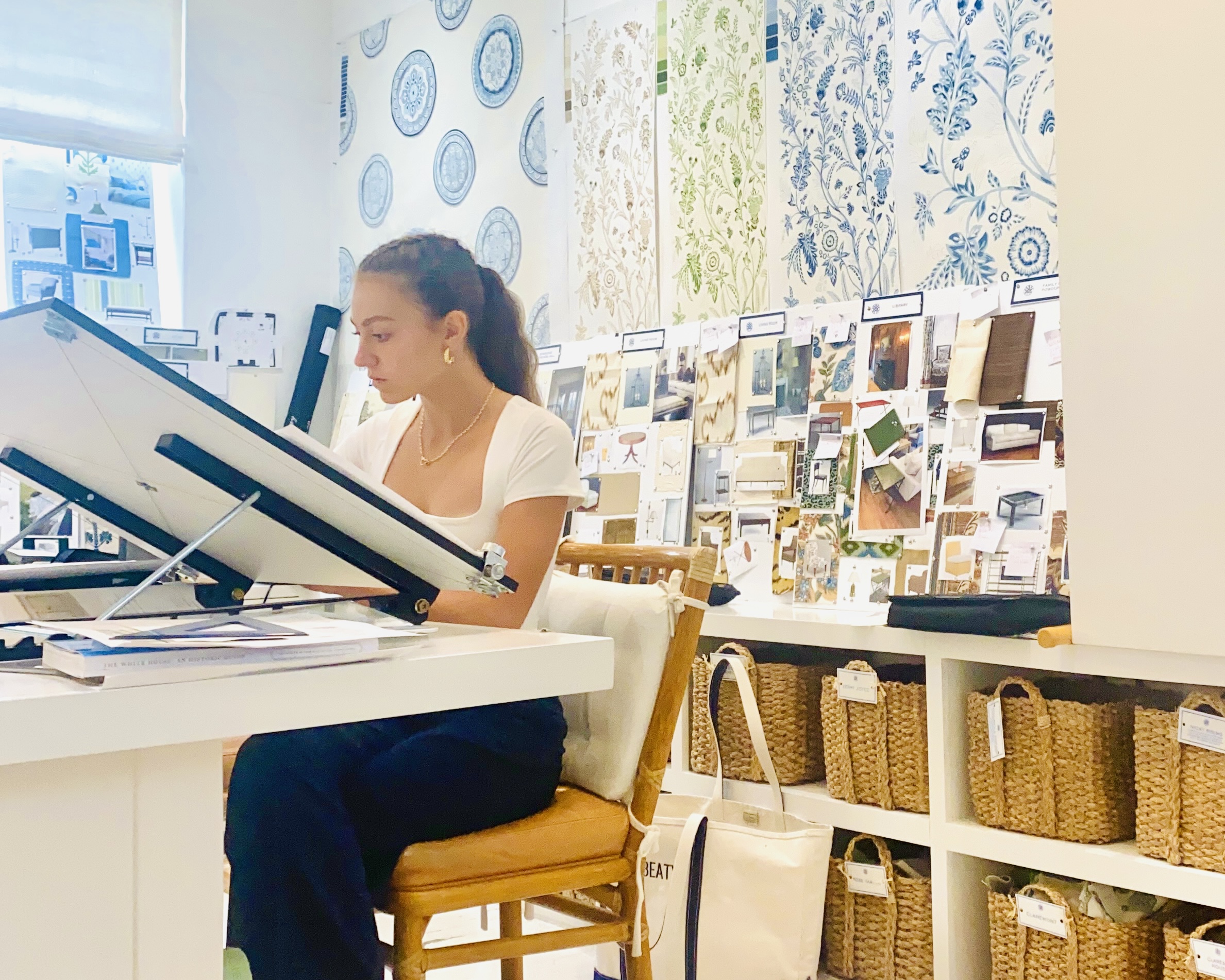 Xani sketching at her work station